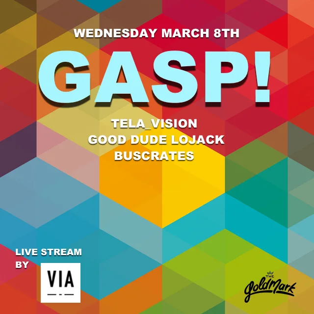 GASP! W/ TELA_VISION, GOOD DUDE LOJACK & GUESTS Wednesday, March 8, 2017 10:00 PM 11:59 PM 22:00 23:59 Google Calendar ICS GASP! W/ TELA_VISION, GOOD DUDE LOJACK AND GUESTSHOUSE, R&B & FUTURE SOUNDS9PM-2AM$3 WELLS 9-11PM