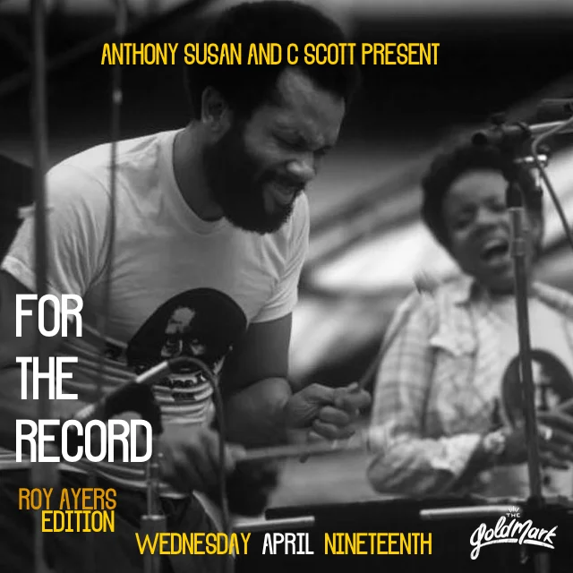 FOR THE RECORD IS THE GOLDMARK'S MONTHLY ALL VINYL SOUL & FUNK DANCE PARTY WITH DJ ANTHONY SUSAN AND PRODUCER/DJ C. SCOTT. EVERY THIRD WEDNESDAY OF THE MONTH THEY SHINE A SPOTLIGHT ON A LEGENDARY ARTIST AND BUILD THE SOUNDTRACK OF THE NIGHT AROUND THEM.