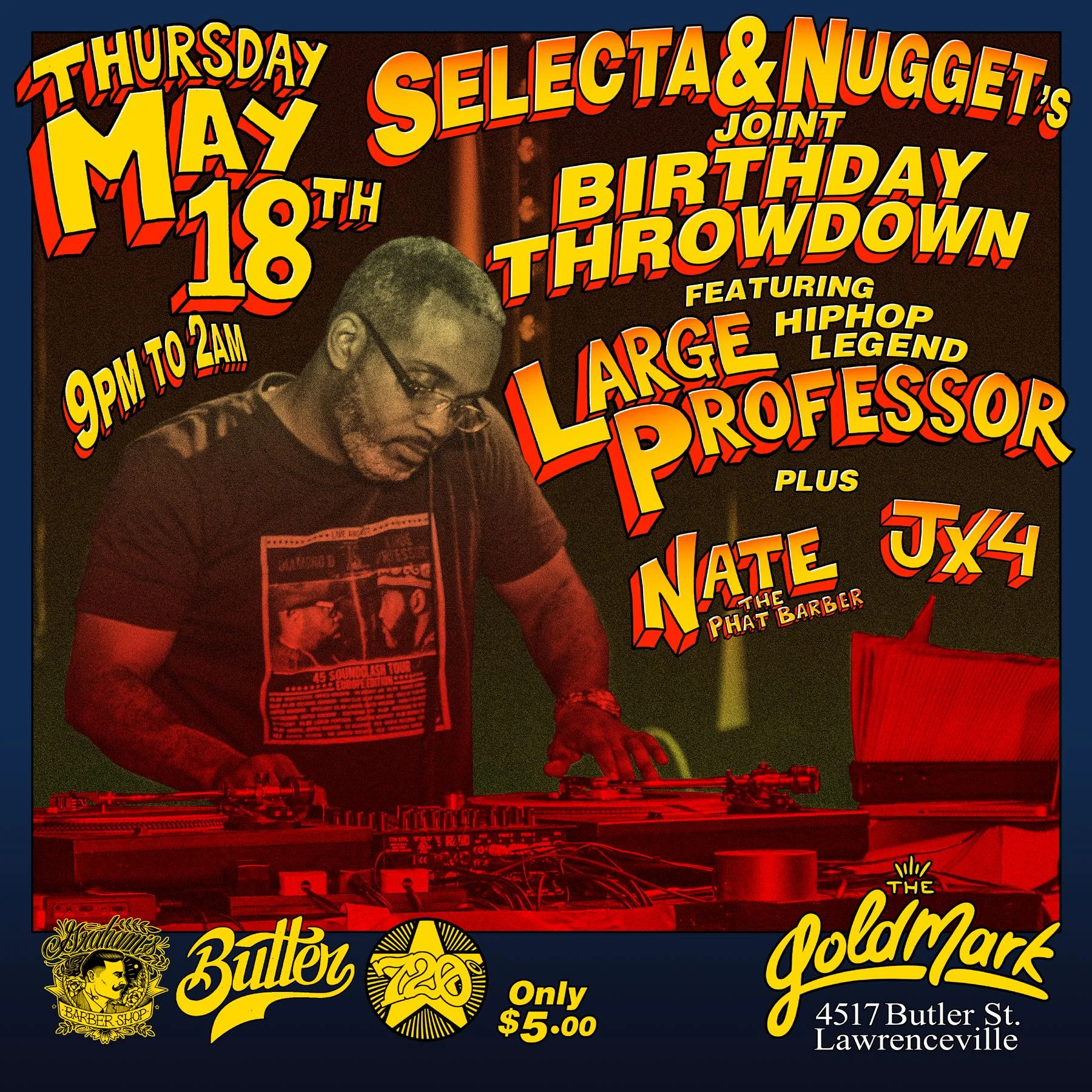 THIRD THURSDAYS OF THE MONTH ARE "BUTTER." 90'S HIP-HOP AND R&B MUSIC ALL NIGHT WITH JX4 AND DJ NUGGET HOLDING DOWN THE BOOTH. THIS MONTH WE'RE BRINGING IN HIP-HOP LEGEND LARGE PROFESSOR TO CELEBRATE THE MAY BIRTHDAYS OF NUGGET AND SELECTA. SPECIAL GUEST DJ NATE DA PHAT BARBER WILL ALSO BE HOLDING DOWN THE DJ BOOTH.
