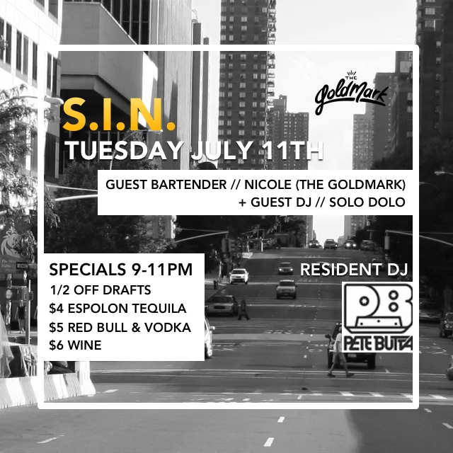 EVERY TUESDAY NIGHT IS SERVICE INDUSTRY NIGHT AT THE GOLDMARK.  RESIDENT DJ PETE BUTTA IS JOINED BY GUEST DJs FROM AROUND THE CITY AS WELL AS DIFFERENT GUEST BARTENDERS TO KEEP THINGS INTERESTING.