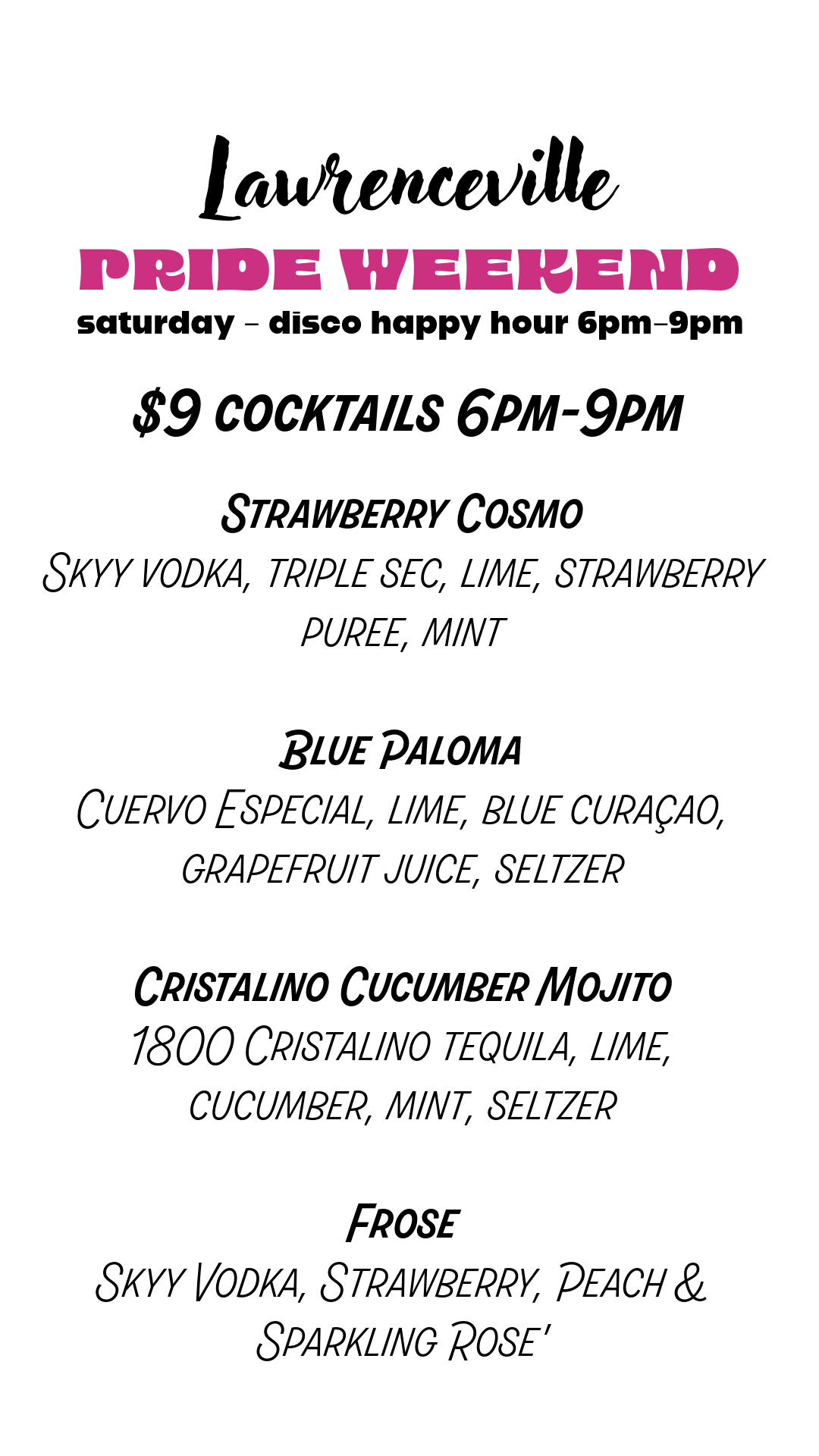 LAWRENCEVILLE PRIDE DISCO HAPPY HOUR WITH DJ SAMUEL ANDRES Saturday, June 15, 2024 6:00 PM 9:00 PM 18:00 21:00 The Goldmark 4517 Butler Street Pittsburgh, PA, 15201 United States (map) Google Calendar ICS DISCO HAPPY HOUR WITH DJ SAMUEL ANDRES6PM-9PMNO COVERDRINK SPECIALS21+ TO ATTEND